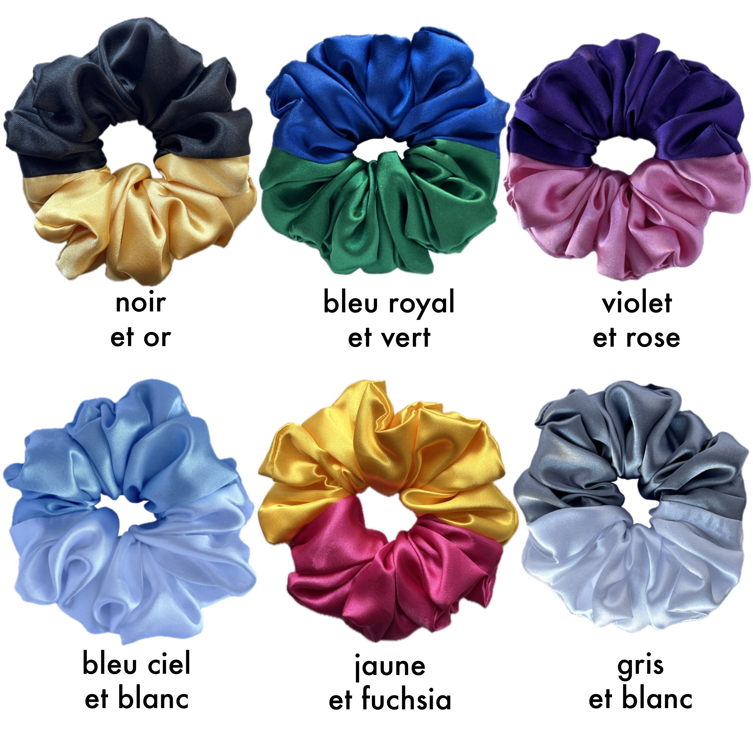 Medium handmade 2-tone 2-split scrunchies with hair elastic 6 pieces